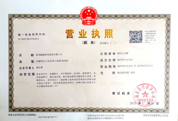 Cangzhou Futong Precision Manufacturing Co.,Ltd 認証